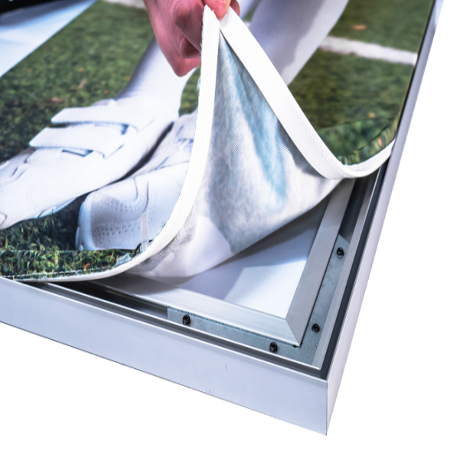 Fælles for alle vores rammesystemer er, at motiverne printes på tekstil i høj kvalitet. Printet kan nemt udskiftes, så du kan forny udtrykket, tilpasse indretningen eller skifte motiv uden at udskifte selve rammen. Det giver en lang levetid og stor frihed i indretningen.